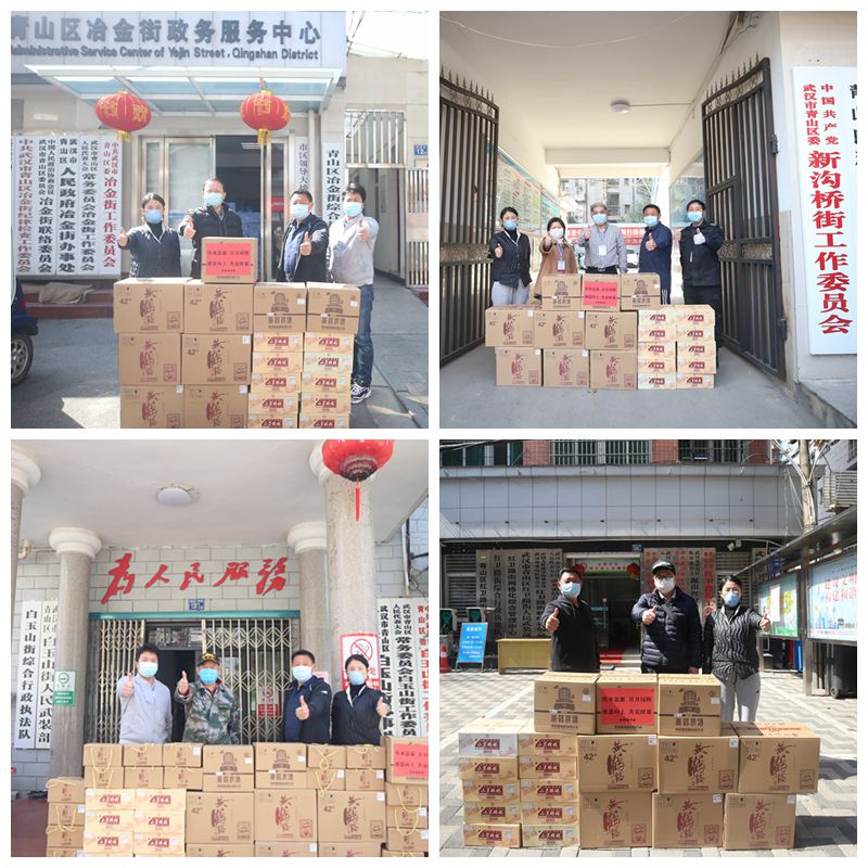 3月17日,黃鶴樓酒業(yè)志愿者服務(wù)隊前往青山區(qū)白玉山街、新溝橋街、冶金街及紅衛(wèi)街辦事處開展慰問,共送去了1800個口罩和近15萬元的防疫物資。公司行政服務(wù)中心總監(jiān)助理陳朝陽參與慰問。
