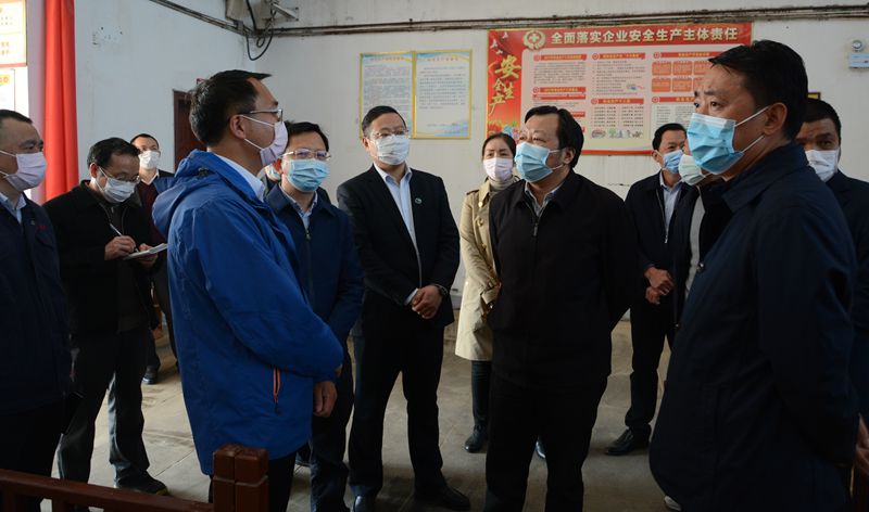 王遠鶴一行走進釀酒車間,檢查廠區內消毒殺菌、返崗員工排查等疫情防控措施,了解黃鶴樓酒業的生產經營和銷售情況,李良代表公司就黃鶴樓酒業復工復產工作及目前公司銷售中遇到的困難做出詳細匯報。