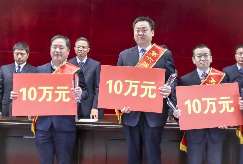 咸寧市政府連續六年以高規格會議頒發市政府質量獎、湖北名牌產品等獎項。本次會議對榮獲“第六屆咸寧市政府質量獎”的天龍黃鶴樓酒業咸寧有限公司、湖北黃袍山綠色產品有限公司、穩健醫療(嘉魚)有限公司3家企業頒發獎杯并分別獎勵人民幣10萬元。