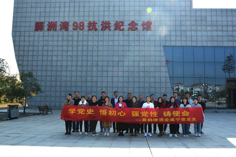 11月27日,黃鶴樓酒業咸寧黨總支組織支部全體黨員、積極分子到嘉魚縣簰洲灣鎮九八抗洪基地開展以“學黨史 悟初心 緬懷先烈傳精神”為主題的紅色教育活動。嘉魚縣簰洲灣鎮黨委書記房金文,黨委副書記、鎮長尹文靖陪同參觀,黃鶴樓酒業酒體設計總工程師李久洪參加活動。