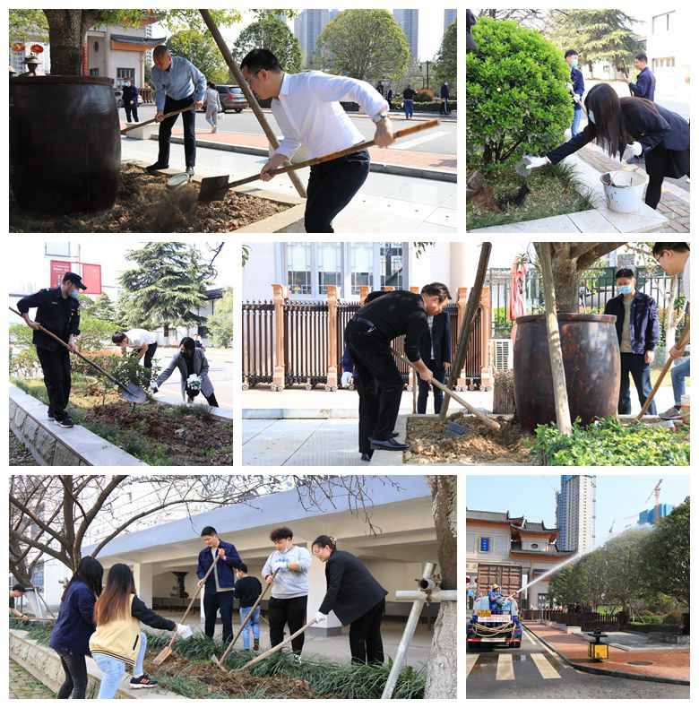 頭頂驕陽,沐浴春風,大家揮灑熱情與汗水,齊心協力、分工合作,為園區道路兩旁樹木松土、施肥、澆水,幫助樹木茁壯成長,共筑綠色家園。