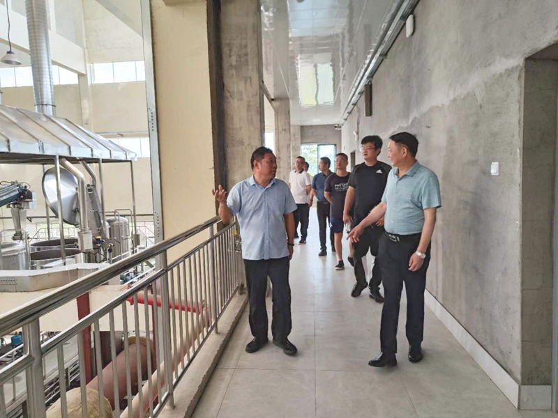 卜詩楨一行先后調研了糧倉、蒸糠車間、釀造車間、制曲車間等地,實地了解了白酒自動化釀造流程。閔波平詳細介紹了隨州分廠近年來的發展狀況、人才培養情況及未來規劃。