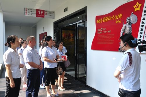 在紅安黨支部書記葉小紅的陪同下,魏國一行首先參觀了紅色展廳、紅色文化長廊、黨團(tuán)活動室、職工活動室等黨建工作陣地。仔細(xì)查閱紅安黨建及“紅旗黨支部”創(chuàng)建工作資料,聆聽了紅安黨支部自創(chuàng)的歌曲《紅色足跡》,詳細(xì)了解“三評一贊”工作法、黨員“微承諾”、支部組織生活等基層黨建工作情況。