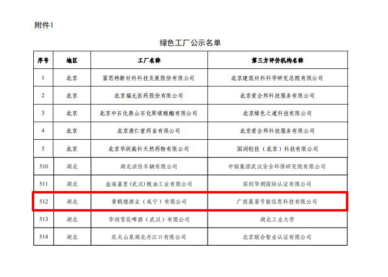 近日,工業(yè)和信息化部公示了2022年度國家綠色制造企業(yè)名單,黃鶴樓酒業(yè)(咸寧)有限公司榮膺工信部“綠色工廠”稱號。咸寧市僅有2家企業(yè)獲此稱號。