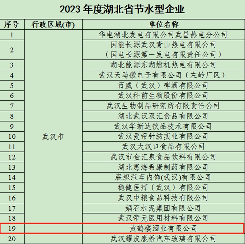 黃鶴樓酒業獲批“湖北省節水型企業”