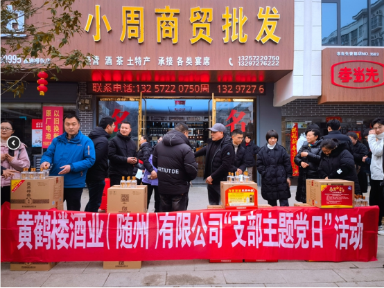 隨州黨支部、團支部聯合隨州銷售公司開展微信掃碼送禮活動。在對現場進行展板和酒品布置后,公司釀造管理中心總監助理蘇祥民帶領20余名志愿者邀請過往行人參加活動,并講述黃鶴樓酒的故事,邀請潛在客戶到隨州新廠參觀游玩。
