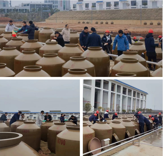 活動(dòng)開(kāi)始前,隨州勾儲(chǔ)車(chē)間工作人員向大家詳細(xì)講解了陶壇清洗操作流程及規(guī)范標(biāo)準(zhǔn)。隨后,大家領(lǐng)取拖把、海綿、手套、水泵等清洗工具,相互配合,分工合作,有人負(fù)責(zé)操作水泵抽水,有人負(fù)責(zé)清洗陶壇,在春日微寒中干事熱情持續(xù)高漲。