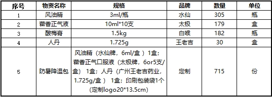 采購中心欲對(duì)黃鶴樓酒業(yè)有限公司防暑降溫物資采購項(xiàng)目進(jìn)行詢價(jià),確定供應(yīng)商,具體詢價(jià)事宜如下: