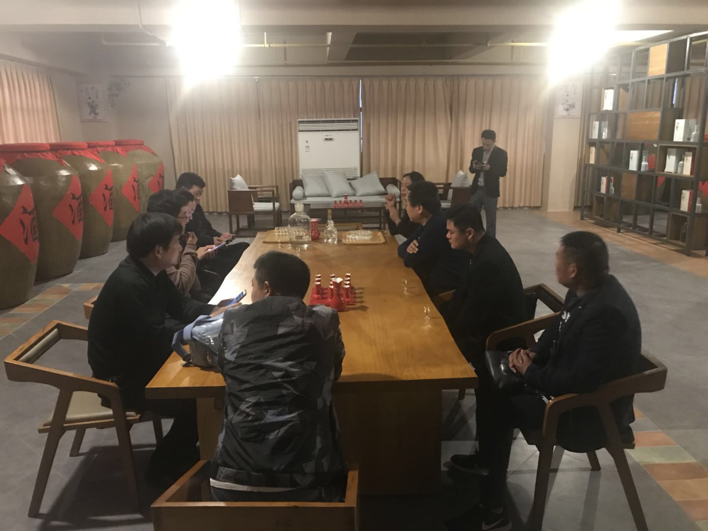靳家海一行沿線參觀了名人酒窖與天成坊,了解黃鶴樓酒系列產品的生產、加工與儲存流程,在名人酒窖中近距離接觸私人定制產品,知曉到這種模式是為對接部分消費者所尋求的專屬感受。