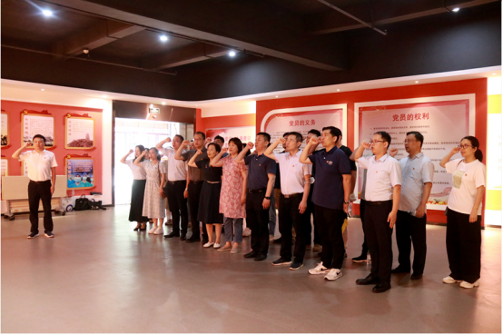 靳鋒一行先后調研了天成坊釀造車間、名人酒窖、酒文化博物館和黨建文化館。在黨建文化館,靳鋒帶領全體黨員重溫了入黨誓詞,回顧了中國共產黨百年奮斗歷史和武漢革命史,了解了黃鶴樓酒業黨建工作開展情況。