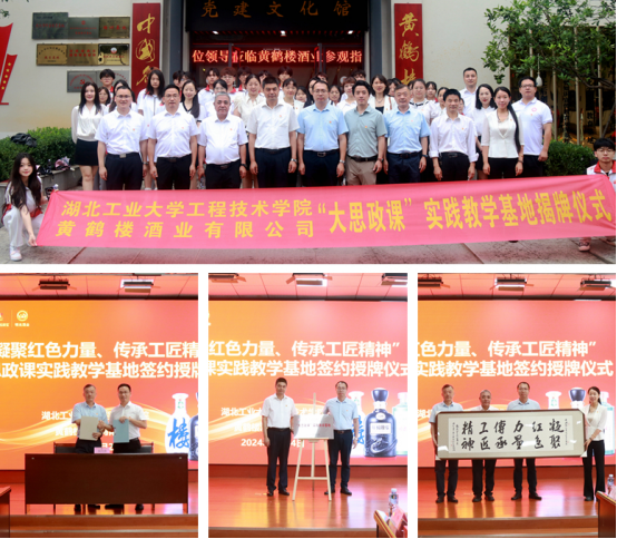 6月24日,湖北工業(yè)大學工程技術學院與黃鶴樓酒業(yè)舉行“大思政課”實踐教學基地簽約及授牌儀式。湖北工業(yè)大學工程技術學院黨委書記朱愛軍、副院長姜偉,黃鶴樓酒業(yè)黨委委員、技術質(zhì)量中心總監(jiān)李良,工會主席、黨工團中心總監(jiān)張瑞,人力資源中心總監(jiān)張佳出席活動。