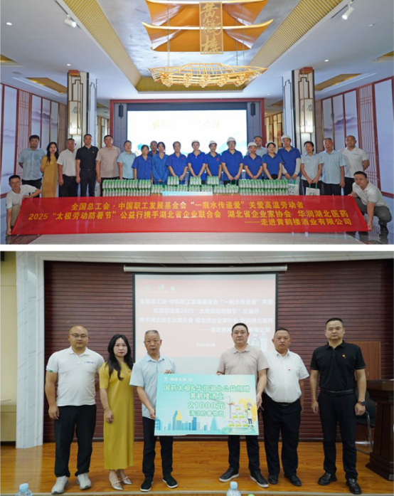 捐贈儀式上,國藥太極和華潤湖北醫(yī)藥向黃鶴樓酒業(yè)一線員工捐贈了價值21000元的防暑物資,并叮囑一線員工在工作中注意夏日健康防暑。