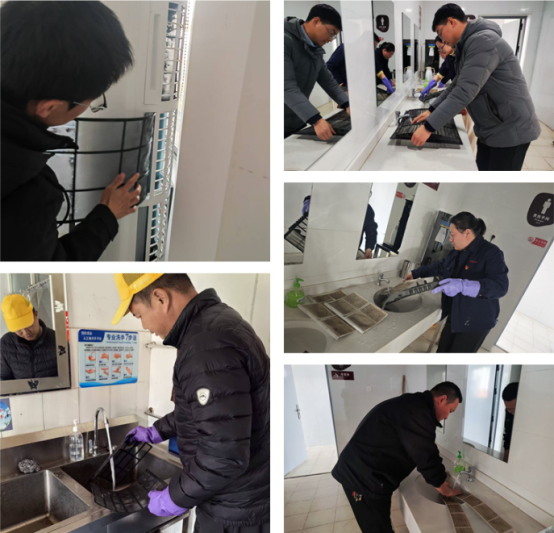 活動(dòng)中,全體人員自備清洗工具,依次對(duì)廠區(qū)辦公室、接待室、會(huì)議室、食堂等區(qū)域空調(diào)過(guò)濾網(wǎng)進(jìn)行拆卸清洗。活動(dòng)全程分工明確,電工負(fù)責(zé)斷電、拆卸及安裝,其余人員則嚴(yán)格按照操作規(guī)范除塵清洗,確保清洗工作安全高效。