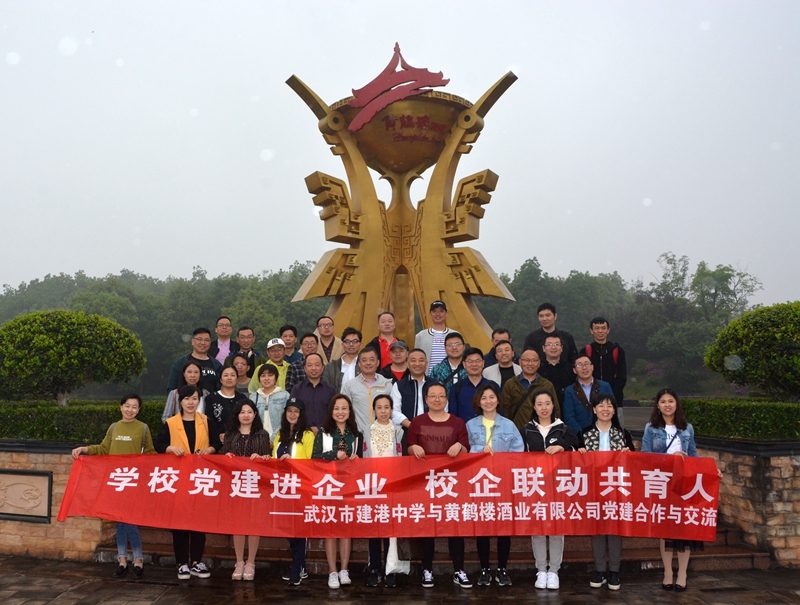 4月21日,武漢市建港中學校長羅功成,黨總支書記唐廣漢一行參觀黃鶴樓森林美酒小鎮,黃鶴樓酒業行政服務中心總監助理張瑞陪同參觀。