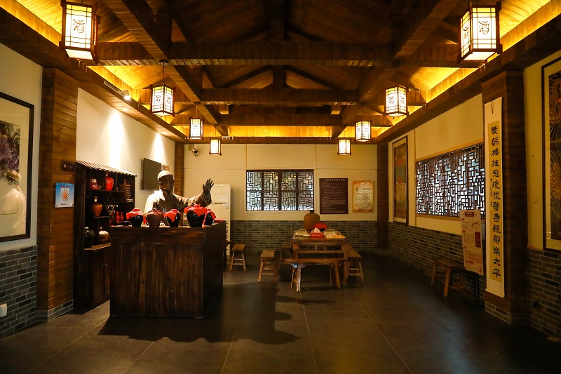 天成坊釀造車間起源于張之洞獻酒,光緒帝御賜名為“天成坊”,寓意佳釀天成,國富民強。在天成坊釀造車間,游客能親身領略名酒生產、窖池發酵的全過程,品嘗原糧在地缸中經時間沉淀長期發酵后釀造的原酒。